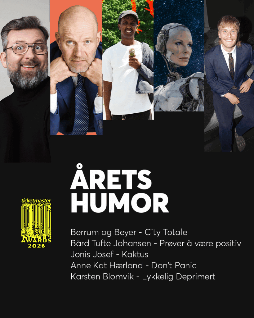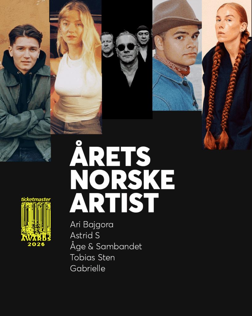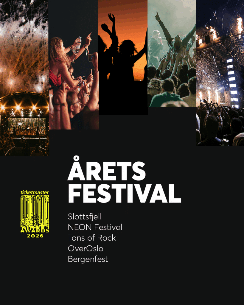Trykk på knappen nedenfor for å avgi din stemme. Avstemningen varer fra 26. januar til 1. februar 2026. Vinnerne av Ticketmaster Awards annonseres i løpet av februar her på bloggen og i våre sosiale medier. Ved å avgi din stemme er du automatisk med i trekningen av et Ticketmaster gavekort på 1000 NOK (vi trekker tre vinnere av gavekort).